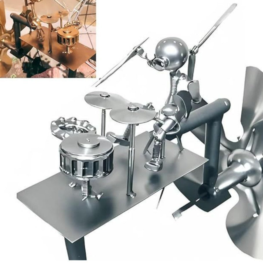 Handmade Craftsmanship: Unique metal drummer windmill, meticulously crafted for durability and aesthetic appeal.